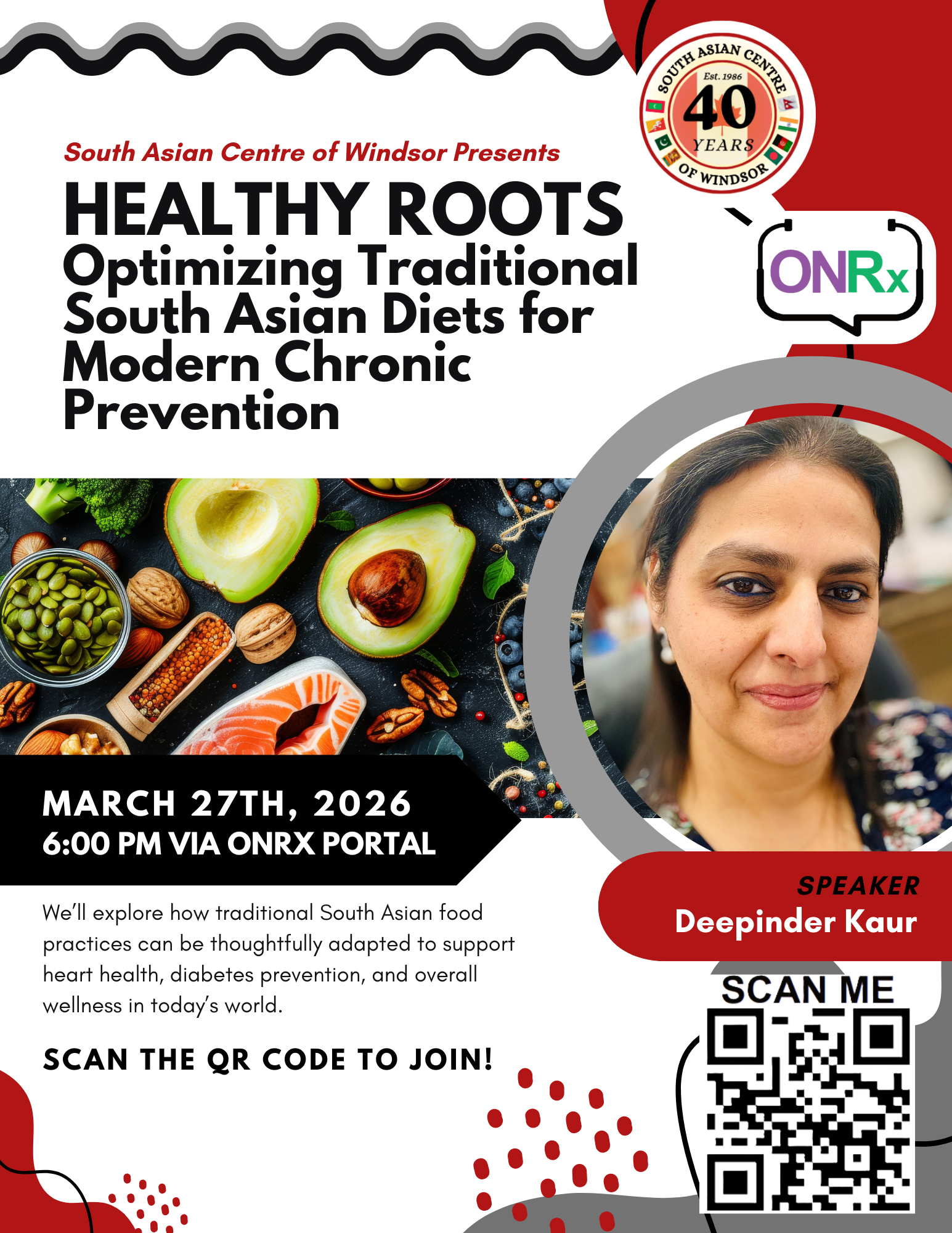 Join the South Asian Centre of Windsor and speaker Deepinder Kaur for Healthy Roots: Optimizing Traditional South Asian Diets for Modern Chronic Prevention. We’re diving deep into how we can honor our traditional food practices while tackling modern health challenges like heart disease and diabetes.