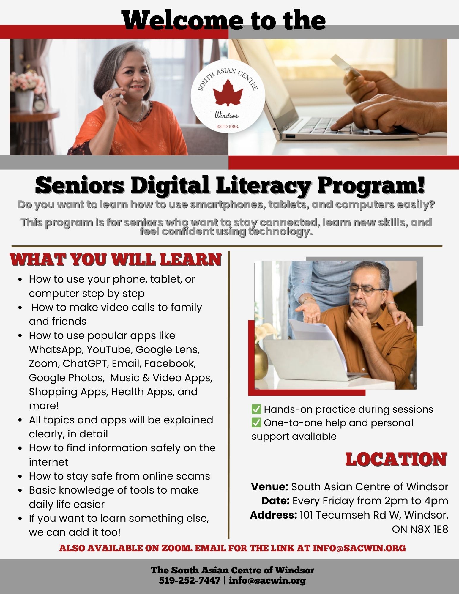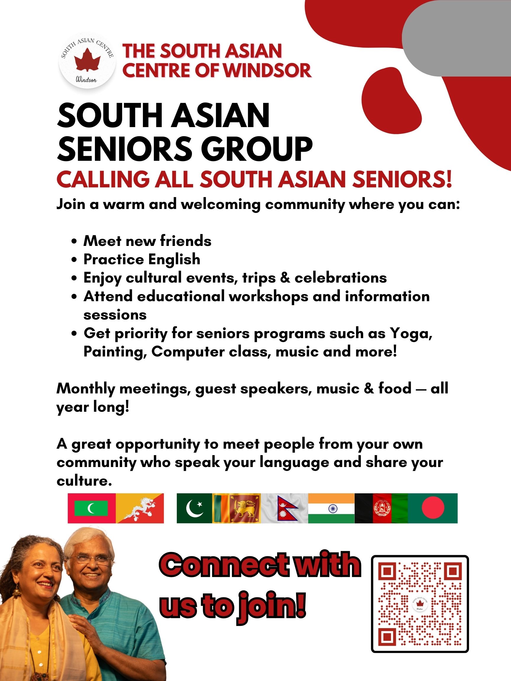 South Asian Seniors Potluck meets every Last Friday of the month. To register email info@sacwin.org or call us at (519) 252 7447.